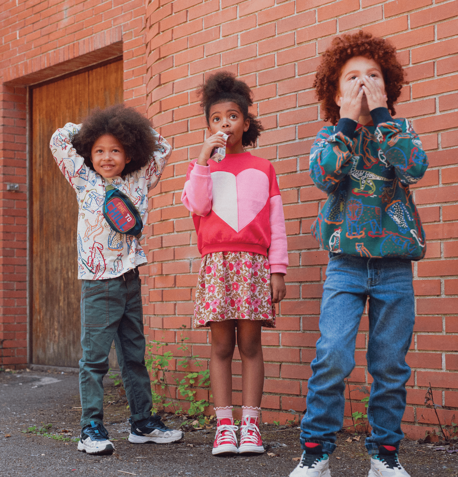 Ici, la mode enfantine devient un terrain de jeu où les enfants vivent leurs aventures dans des tenues originales, ludiques et pleines de caractère.